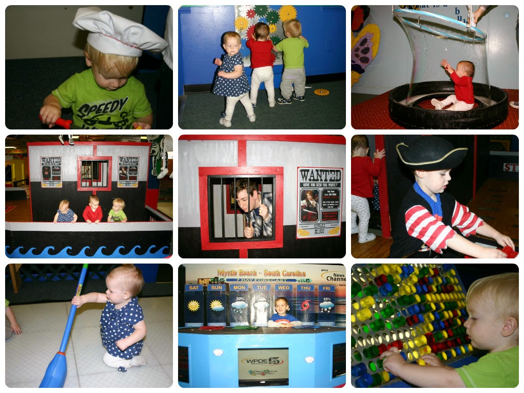 It poured all afternoon! We didn't want to spend the entire day in the hotel, but the weather obviously ruled out the boardwalk and mini-golf. Jesse found a Groupon for the Children's Museum of South Carolina. We only paid $16 for all six of us. It was very similar to the museum we frequent at home. There were developmentally appropriate activities for each kid.