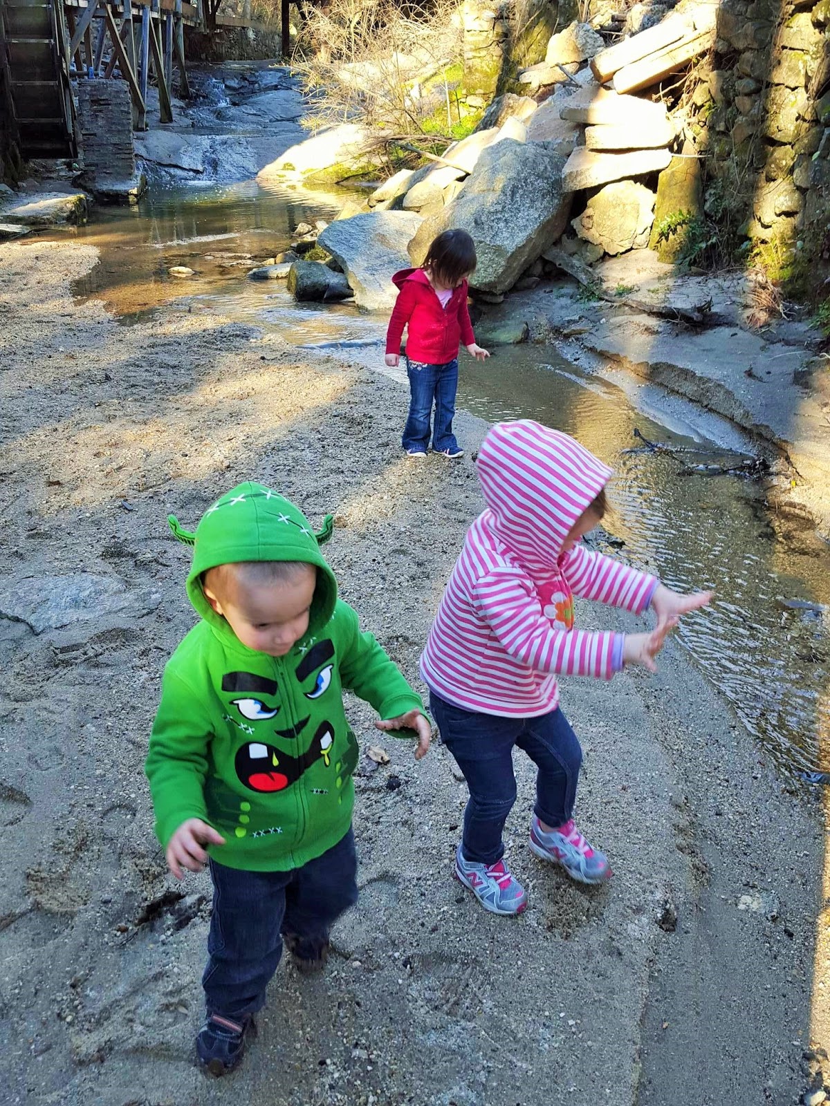 ...so we made our way down to the creek to get a better look. It might not look like they were having fun, but all of the kids were engrossed in their surroundings. (water, sand, wheel, bridge, rocks, etc)