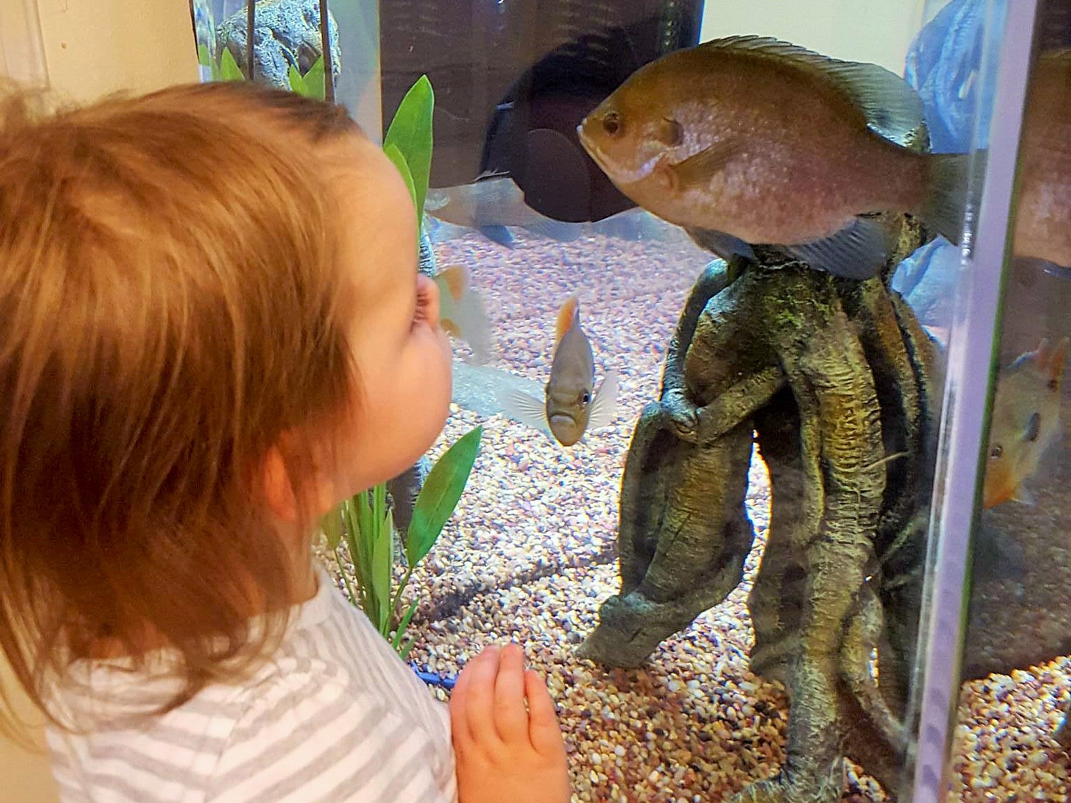 James was so curious today. He crouched down, carefully observing every animal. The chickens were especially vocal, which frightened Maddie.